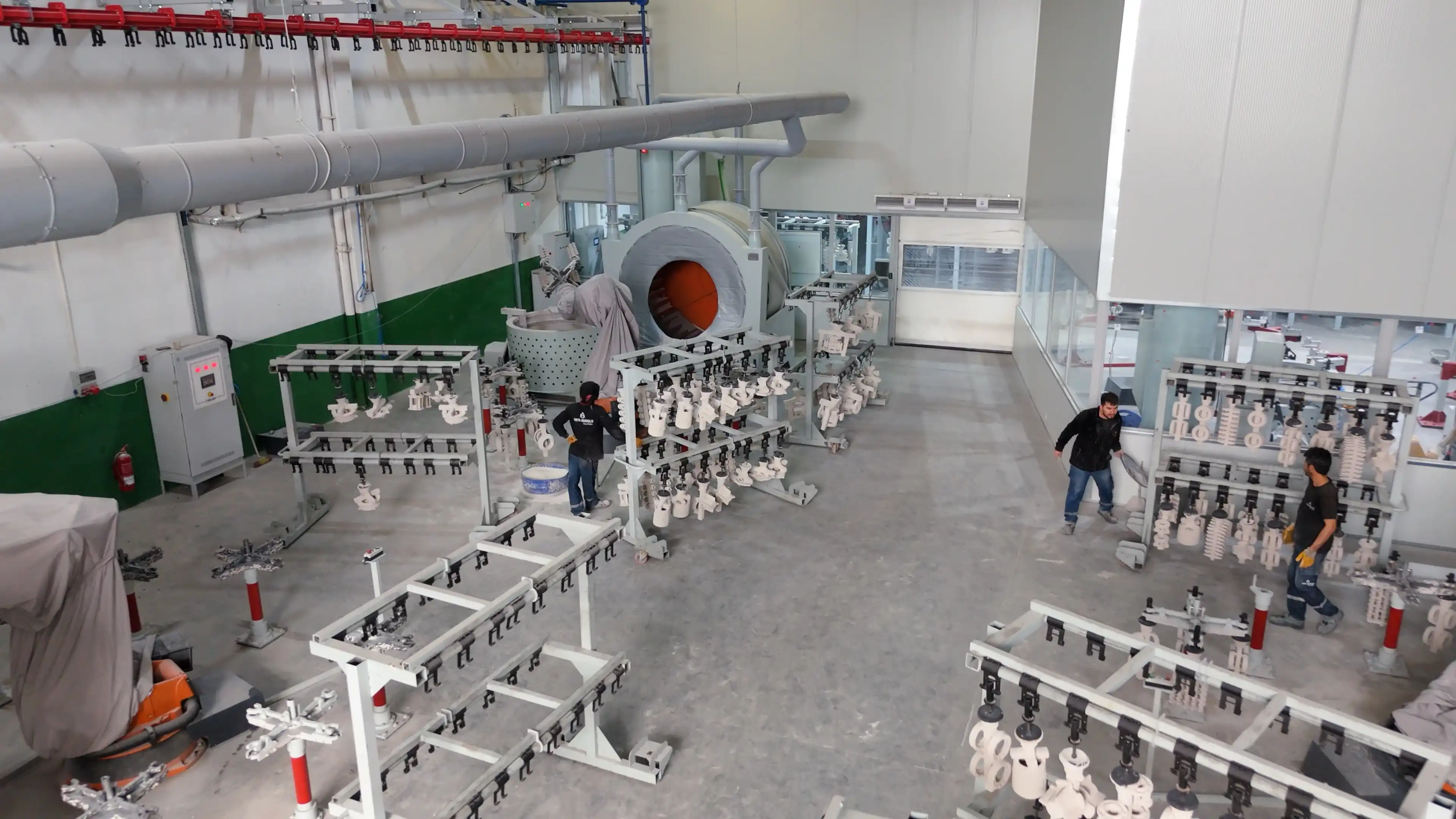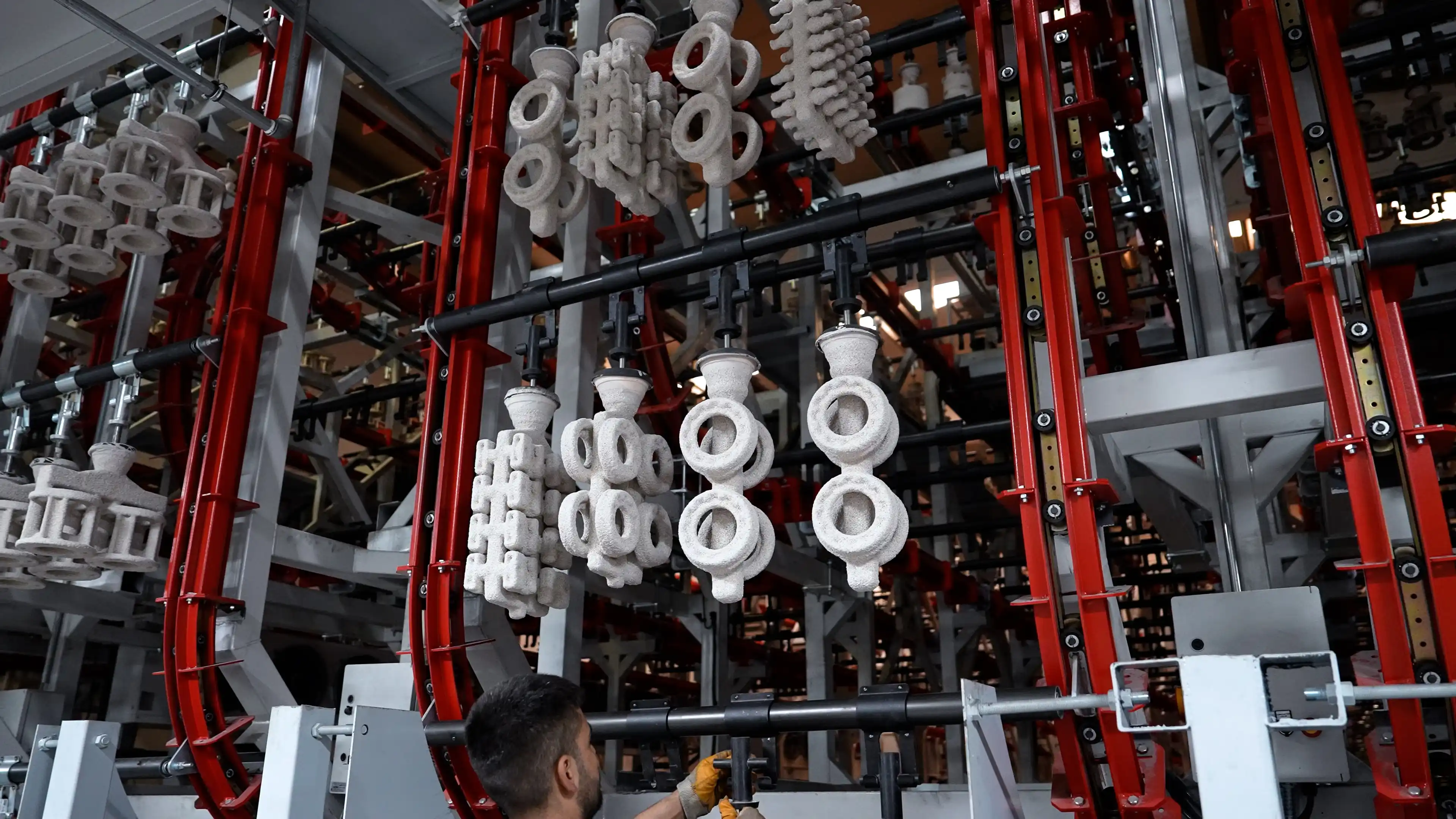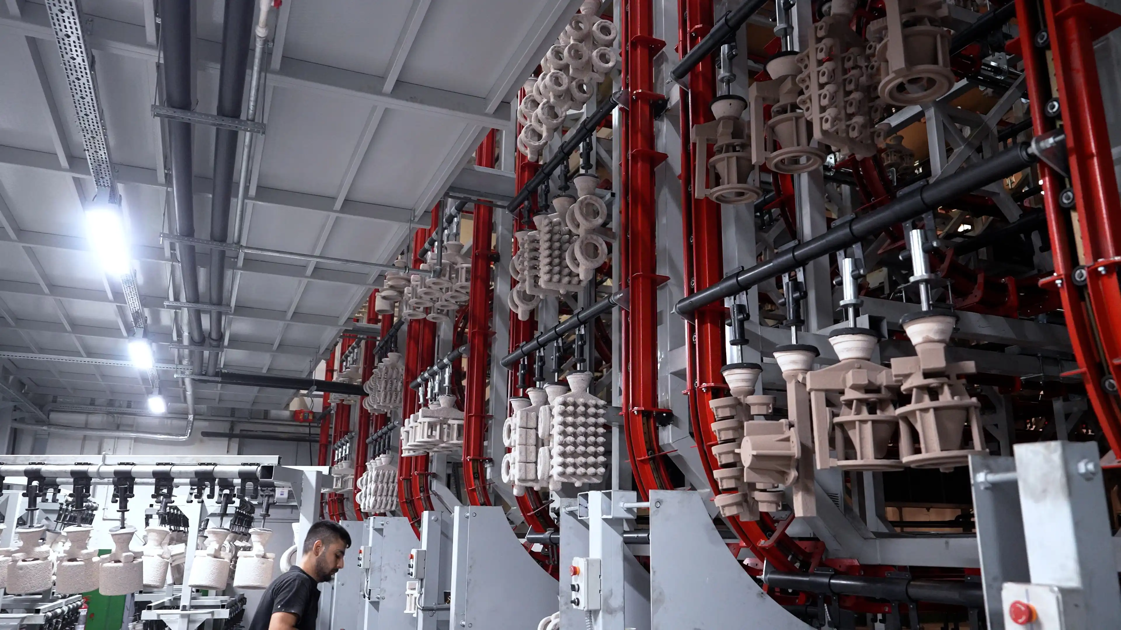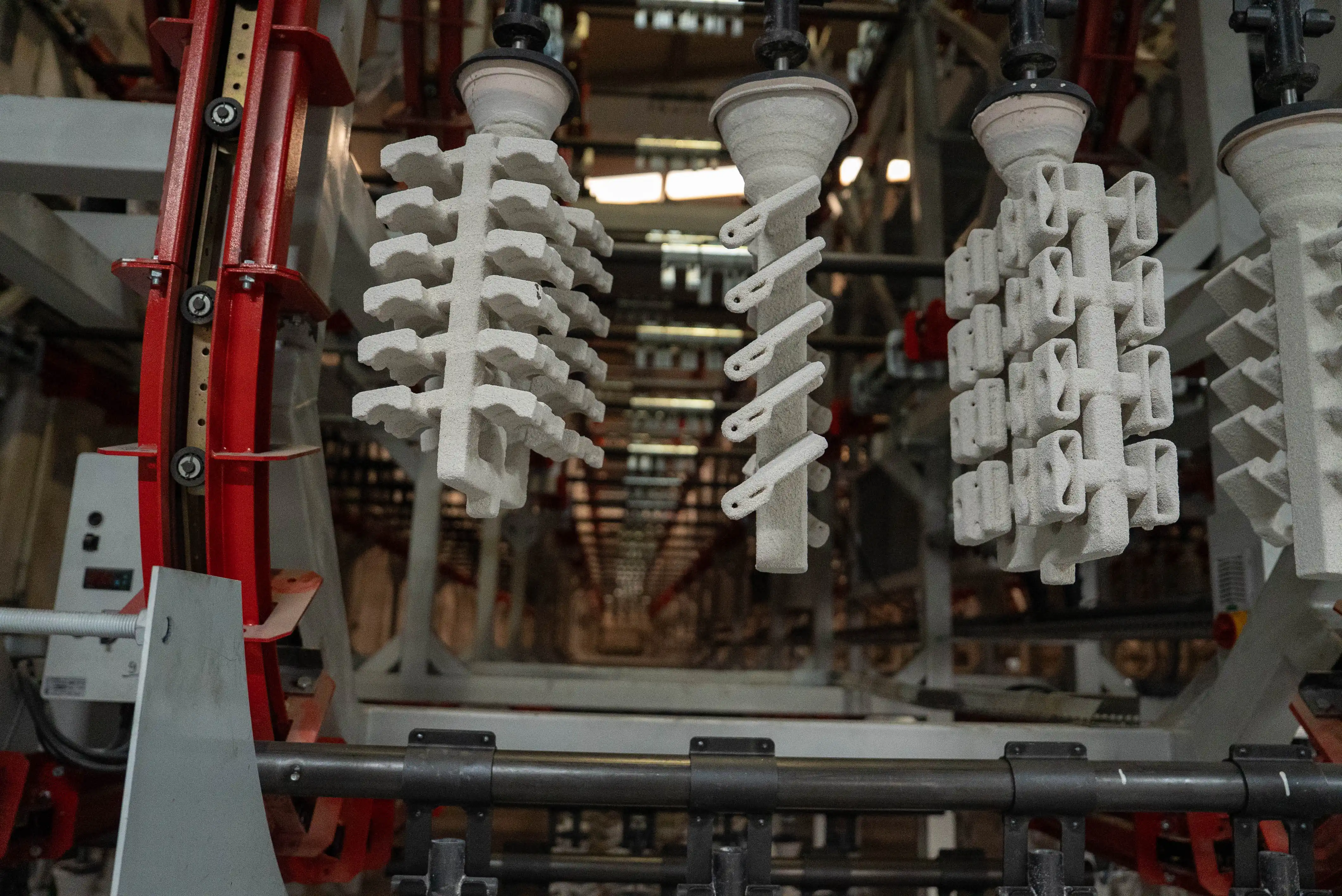 Salkımlar, reçetelerine göre hazırlanmış seramik çamuru ile kaplanır.